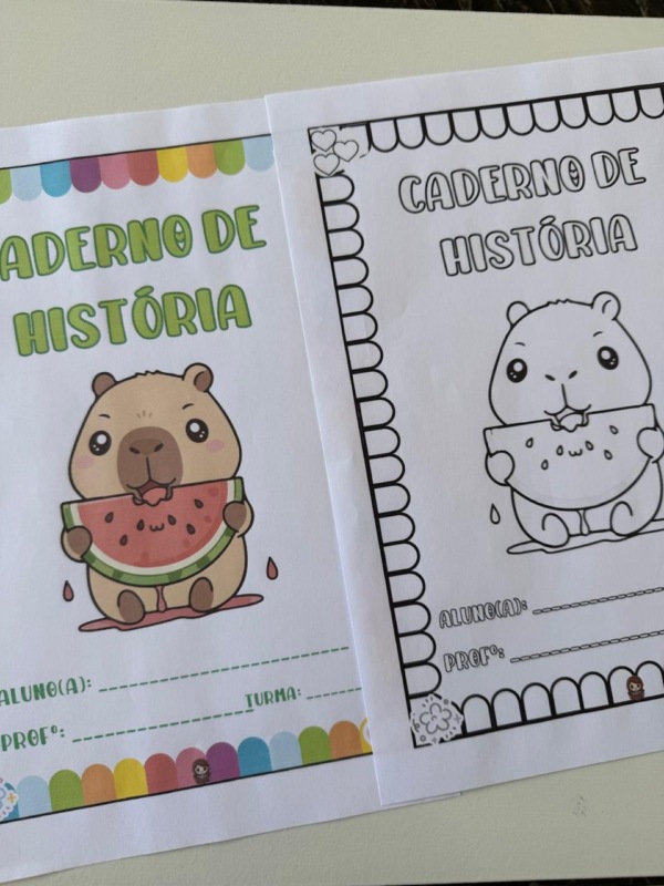 Transforme a organização escolar em um momento ainda mais especial com o nosso Kit de Capas de Caderno Capivarinha!