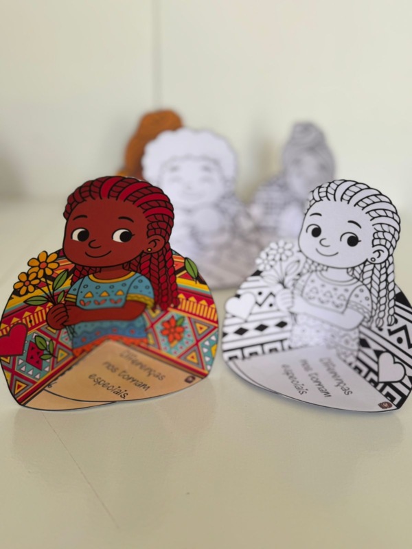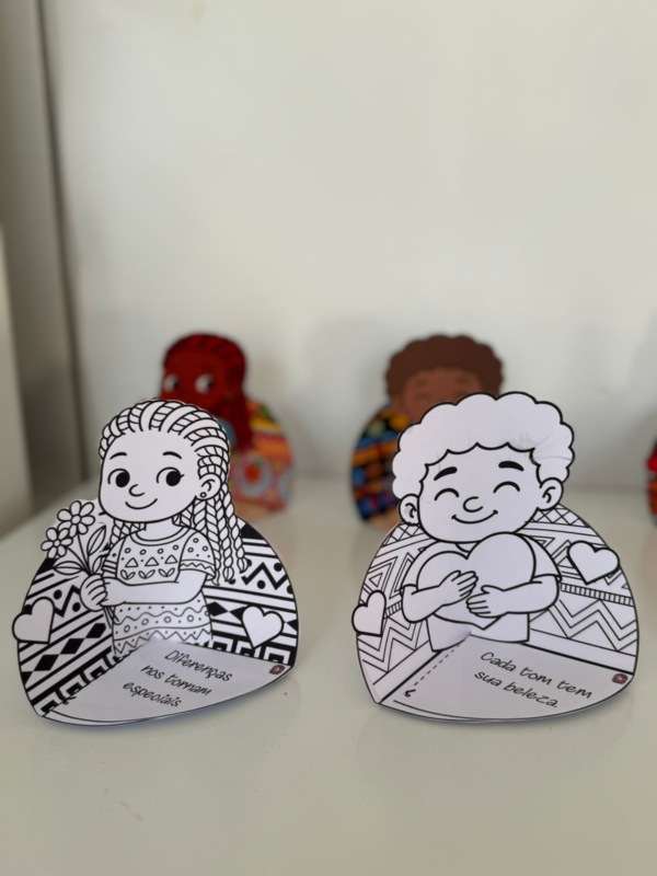 São 4 modelinhos diferentes, disponíveis nas versões colorida e preto e branco, ideais para montar, colorir e refletir sobre o tema.