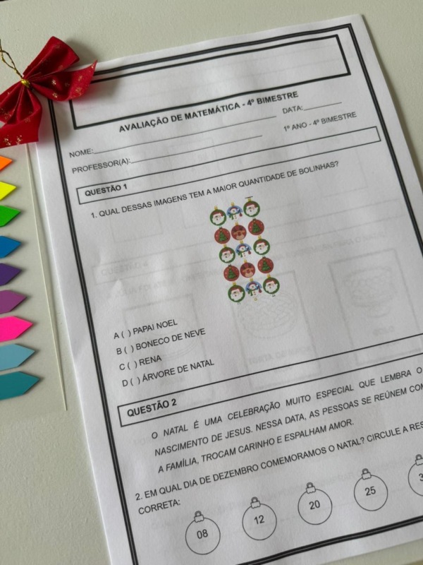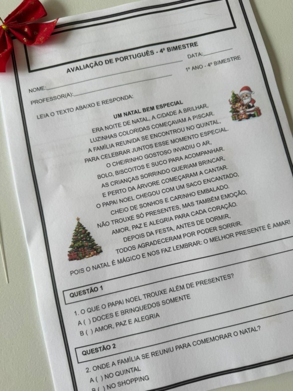 Avaliações completas do 4º bimestre – 1º ano, com temática natalina para deixar o encerramento do ano ainda mais especial!