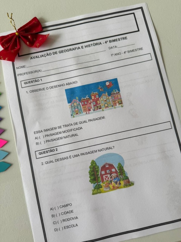 O material inclui atividades de Português, Matemática, Ciências, Geografia e História, todas cuidadosamente elaboradas para avaliar as habilidades trabalhadas ao longo do bimestre.