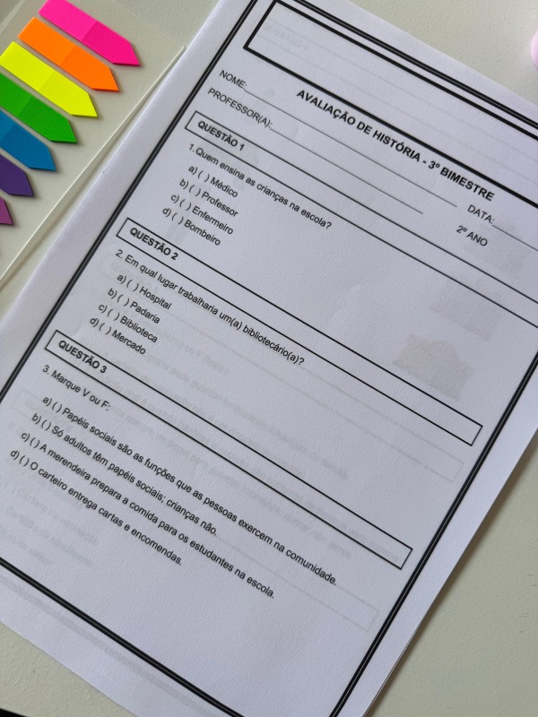 Material prático e objetivo para verificar os conteúdos essenciais do período, com atividades claras, visuais e alinhadas ao 2º ano. Pronto para imprimir e aplicar.