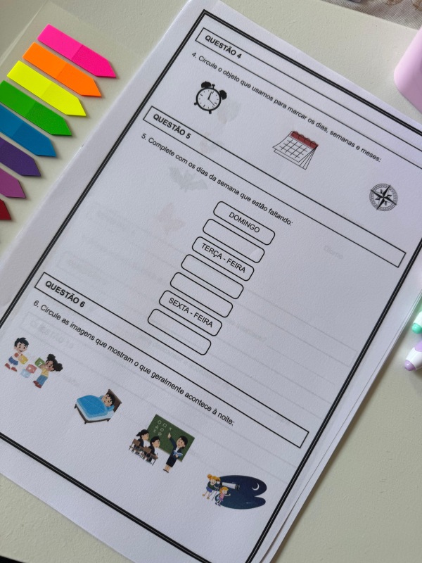 Ciências: períodos do dia; dias da semana e calendário; hábitos diurnos/noturnos; noções de tempo no cotidiano.