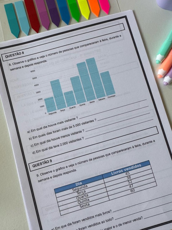 Matemática: operações, múltiplos/divisores, gráficos, problemas do cotidiano.