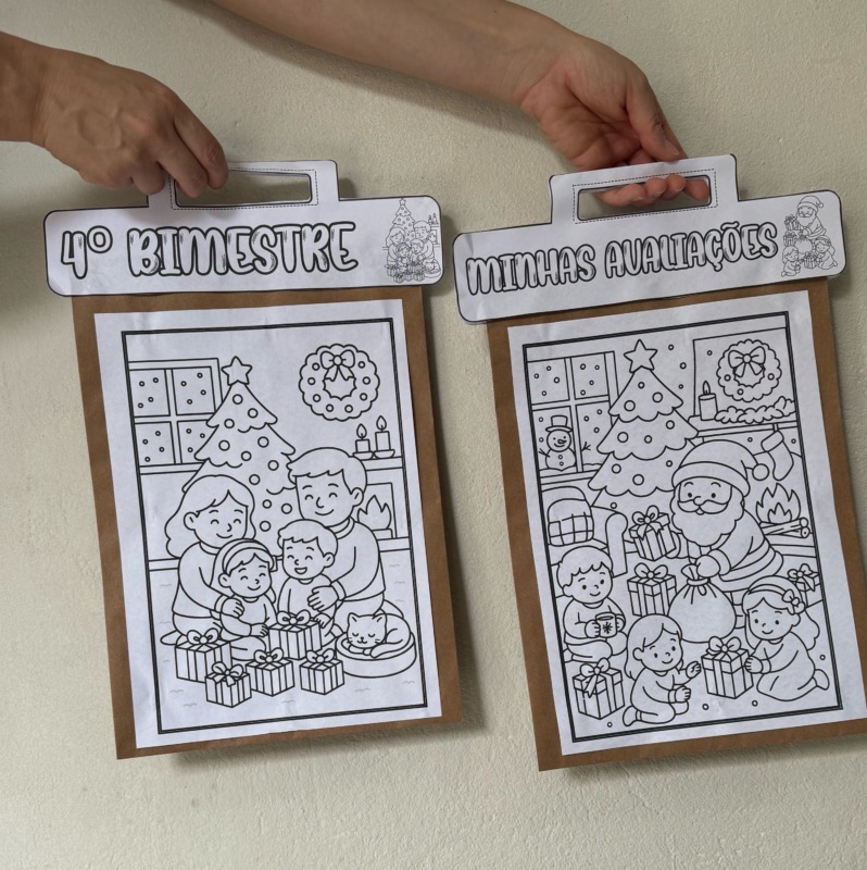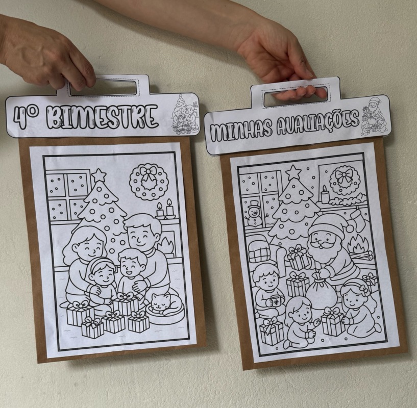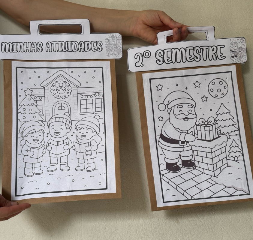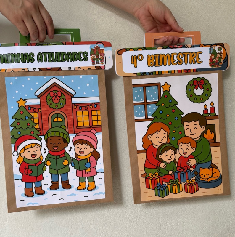 As capas possuem ilustrações natalinas encantadoras, garantindo um toque de carinho e cuidado na apresentação dos trabalhos dos alunos.