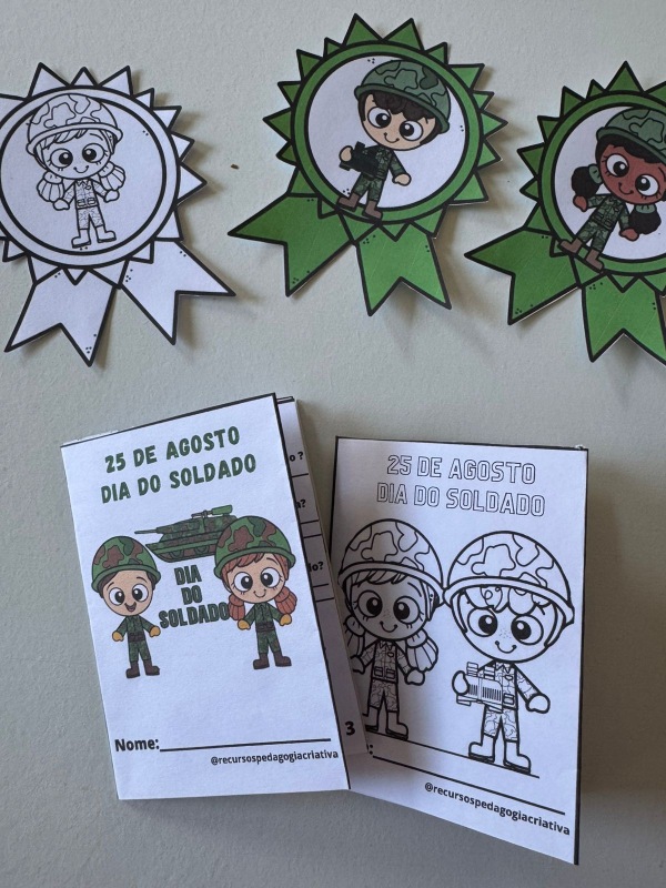 Celebre o Dia do Soldado com este material educativo e divertido! Inclui atividades de leitura, interpretação, caça-palavras, completação de cantigas, desafios de escrita e desenhos para colorir. Ideal para trabalhar a data de 25 de agosto e apresentar às crianças a história e a importância do soldado, com destaque para o Duque de Caxias, patrono do Exército Brasileiro.